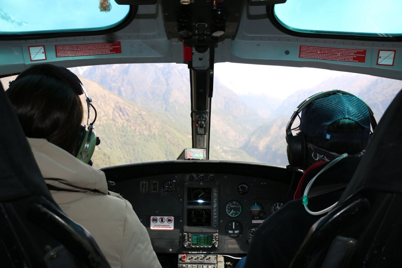 - The helicopter lands at world-renowned Tenzing Hilary Airport.
