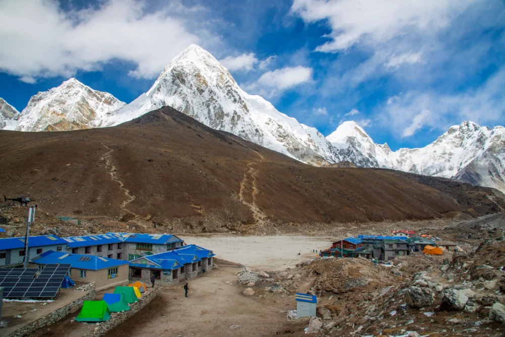 One of your first stops is Namche Bazaar, the lively hub of the Khumbu region at about 3,440 m. It’s a great spot to acclimate, with shops, cafes, and a museum on Himalayan culture. If you’re up for a bit more challenge, crossing Cho La Pass (5,420 m) adds some thrills into your journey with its snowy, icy paths, but the breathtaking views make it worth it.