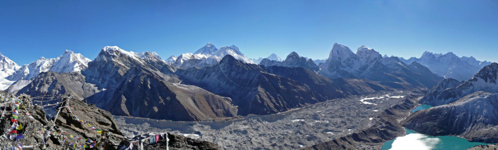- From the top, you get sweeping vistas of Everest, Lhotse, Makalu, and Cho Oyu. It’s not just the peaks that will leave you speechless, but also the tranquility and beauty of the lakes nestled below you.