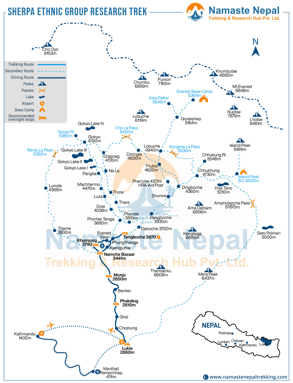 Namaste Nepal Trekking & Research Hub invites you to explore the Sherpa ethnic group in the breathtaking Everest region. This trek is perfect for those who prefer not to endure high altitudes but still want to experience the majesty of Everest and the rich culture of the Sherpa people. This journey is efficient yet incredibly rewarding, offering the true pleasure of trekking among the 8,000-meter peaks while immersing in the charming culture and hospitality of the Sherpa community.