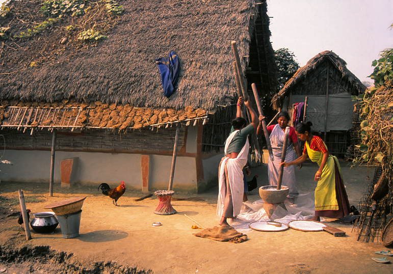They are still determining where they came from, although some believe they are the descendants of the Rajputs (from Rajasthan), who sent their women and children away to escape Mughal invaders in the 16th century. The women later married into local tribes. Others believe they are descended from the royal Sakya clan, the Buddha’s family, although they are not Buddhist. Their beliefs are largely animistic and increasingly influenced by Hinduism, and they live a life well adapted to their environment. Apart from farming, Tharus also hunts and fishes.